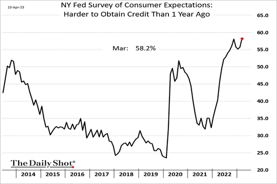 Finally, obtaining credit has become more difficult for U.S. consumers compared to a year ago: