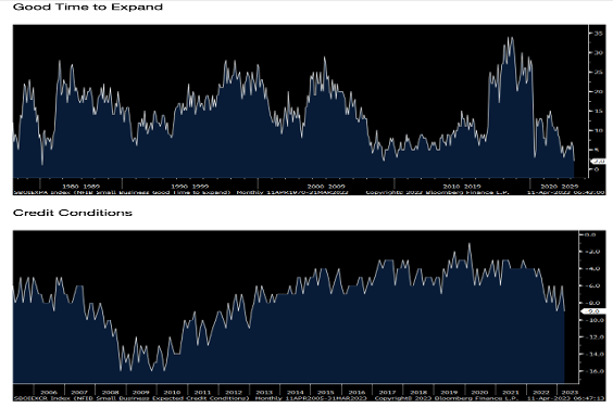 * We have always viewed the condition of small and medium sized businesses – who don't have the size or scale of larger corporations and rely on bank funding – as a leading economic indicator, often providing early warning signs of slowing domestic economic growth. Here a quote from today's NFIB release: