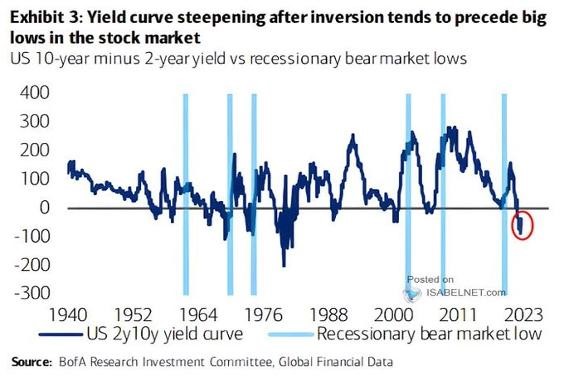 The same conclusion can be derived by observing the inversion of the 10-year Treasury note with the two-year Treasury note: