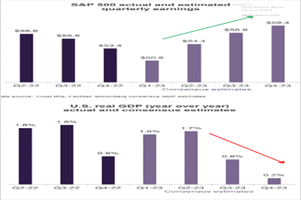 * The consensus somehow believes corporate profits will be healthy despite a significant economic slowdown. It's highly unusual for the economy to weaken but earnings accelerate: