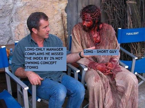 4) This meme is circulating in the hedge-fund community – for good reason: its gallows humor captures how most long-short managers feel after more than a decade of underperformance, mostly driven by big losses on the short side...