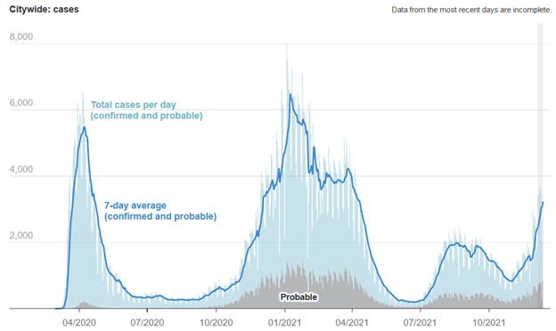 FWIW – totally anecdotal – but COVID is present in New York in a way I've never seen, dating back to the earliest days. All my friends / clients / coworkers are vaccinated, and nearly all have the booster. Despite this, COVID is spreading like WILDFIRE. Dozens and dozens have been infected in a matter of a few weeks. I think it's going to get much worse before it gets better. It must be omicron – delta and the other strains never spread like this. It's literally everywhere. Everyone is backing out of dinners and holiday parties this week were canceled. I was supposed to see a client and canceled – the first time I've voluntarily canceled a client trip since April 2020.