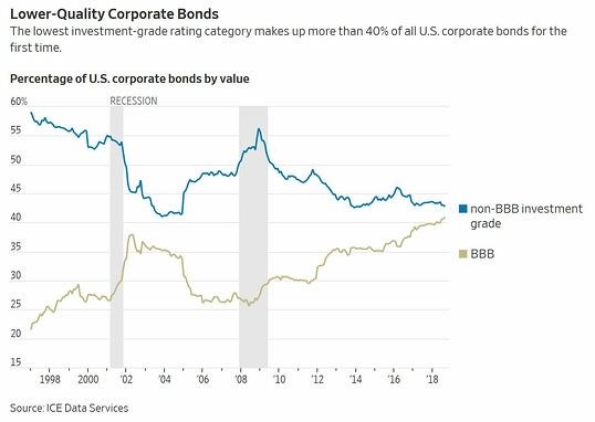 Chief financial officers have been borrowing as much as they can get away with without their debt being classed as junk, because the move to junk leads to sharply higher borrowing costs. The attention paid to that rating boundary means the usual danger of leverage comes with an extra risk: the buildup of BBB bonds could mean even more downgrades to junk in the next recession than usual.