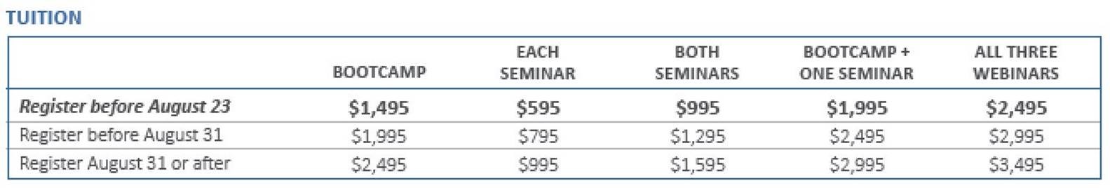 The super early bird pricing expires on Thursday, so don't delay! Here's the tuition schedule: